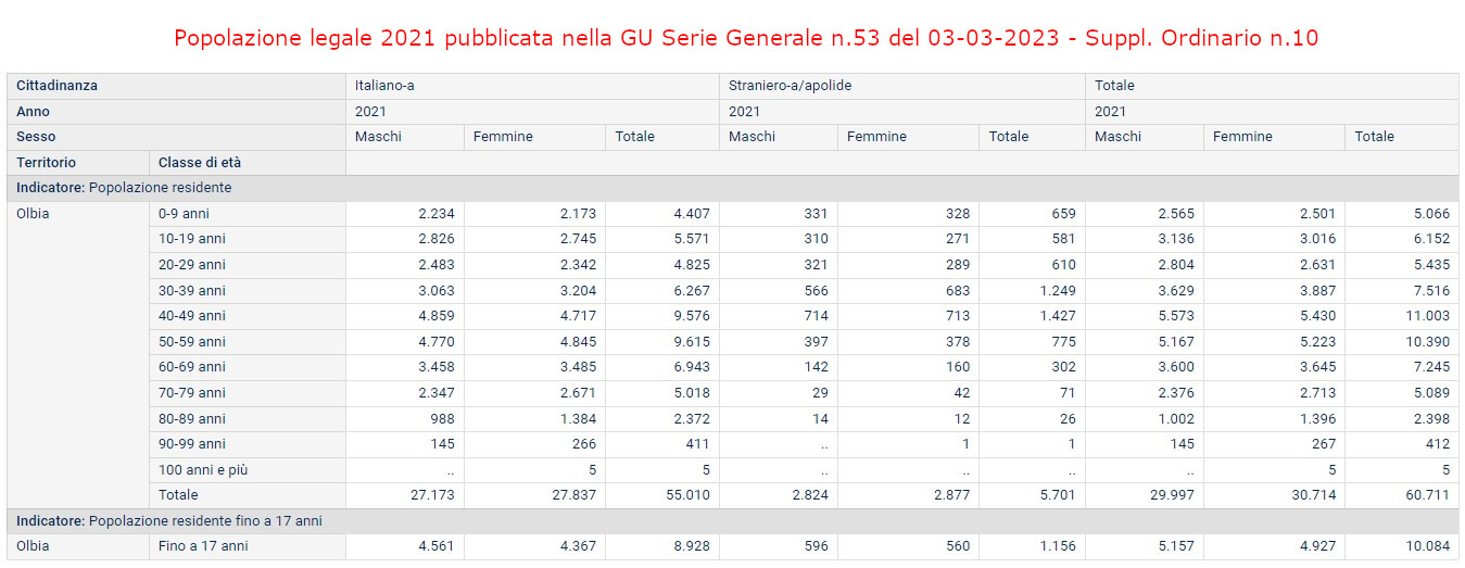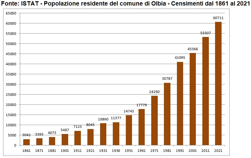 - Popolazione residente del Comune di Olbia - censimenti dal 1861 al 2021