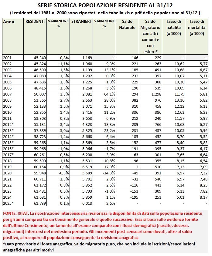 Tabelle popolazione 31 dicembre 2025 [pdf]