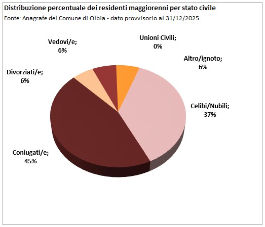 - Distribuzione percentuale dei residenti maggiorenni secondo lo stato civile