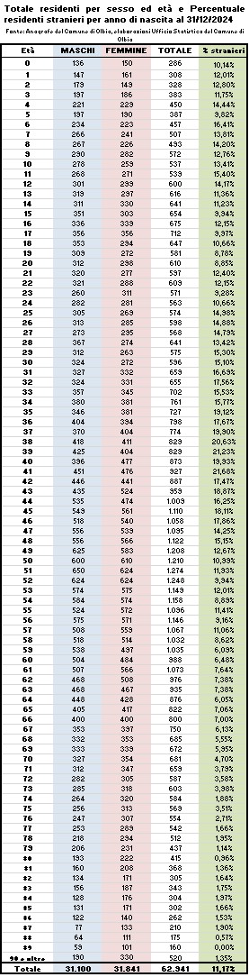 - Popolazione residente al 31/12 e cittadini stranieri nel Comune di Olbia