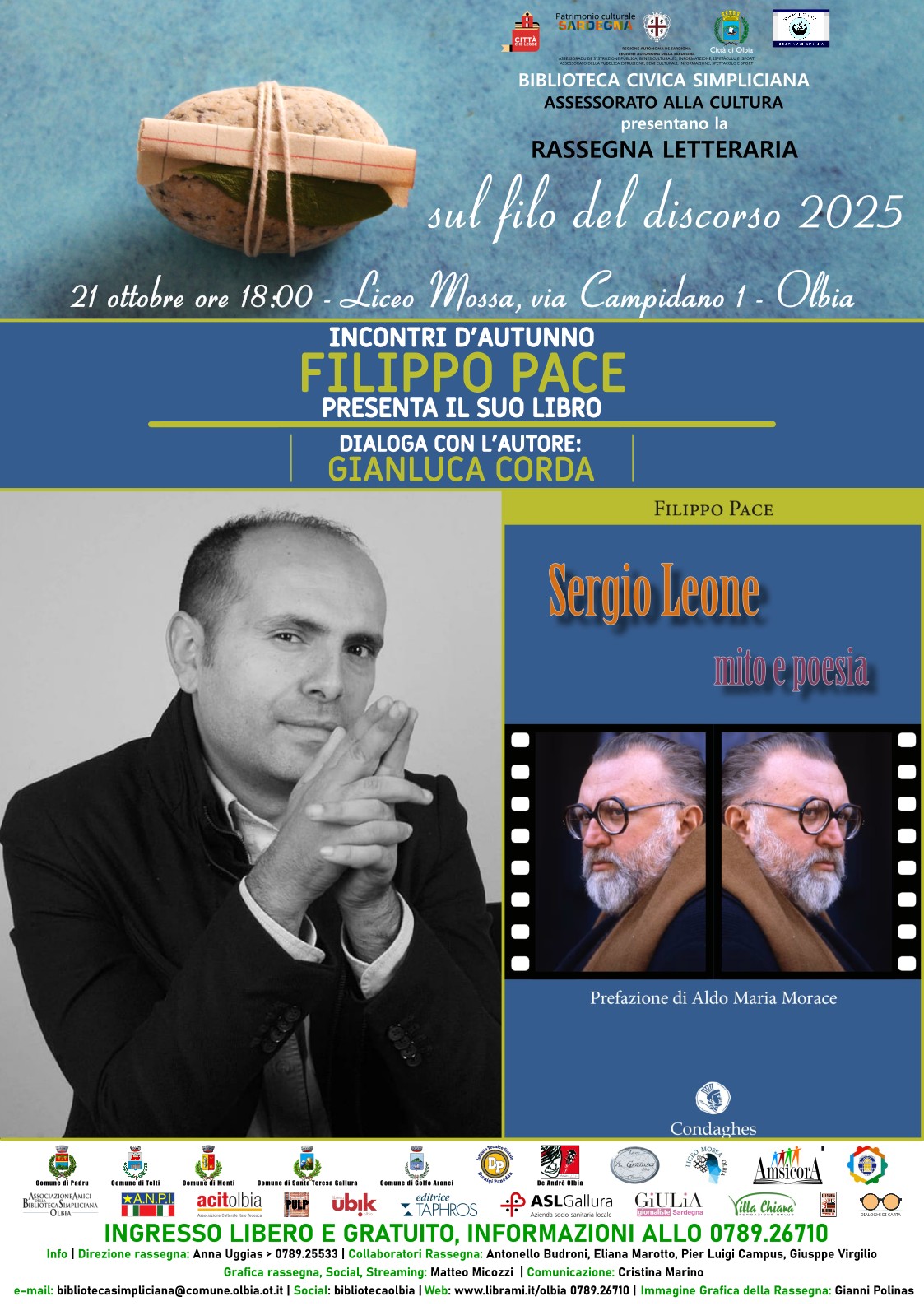 - Martedì 21 marzo 2025 ore 18:00, presentazione del libro "Sergio Leone - Mito e poesia", di Filippo Pace, c/o il Liceo Mossa, Via Campidano 1, Olbia;