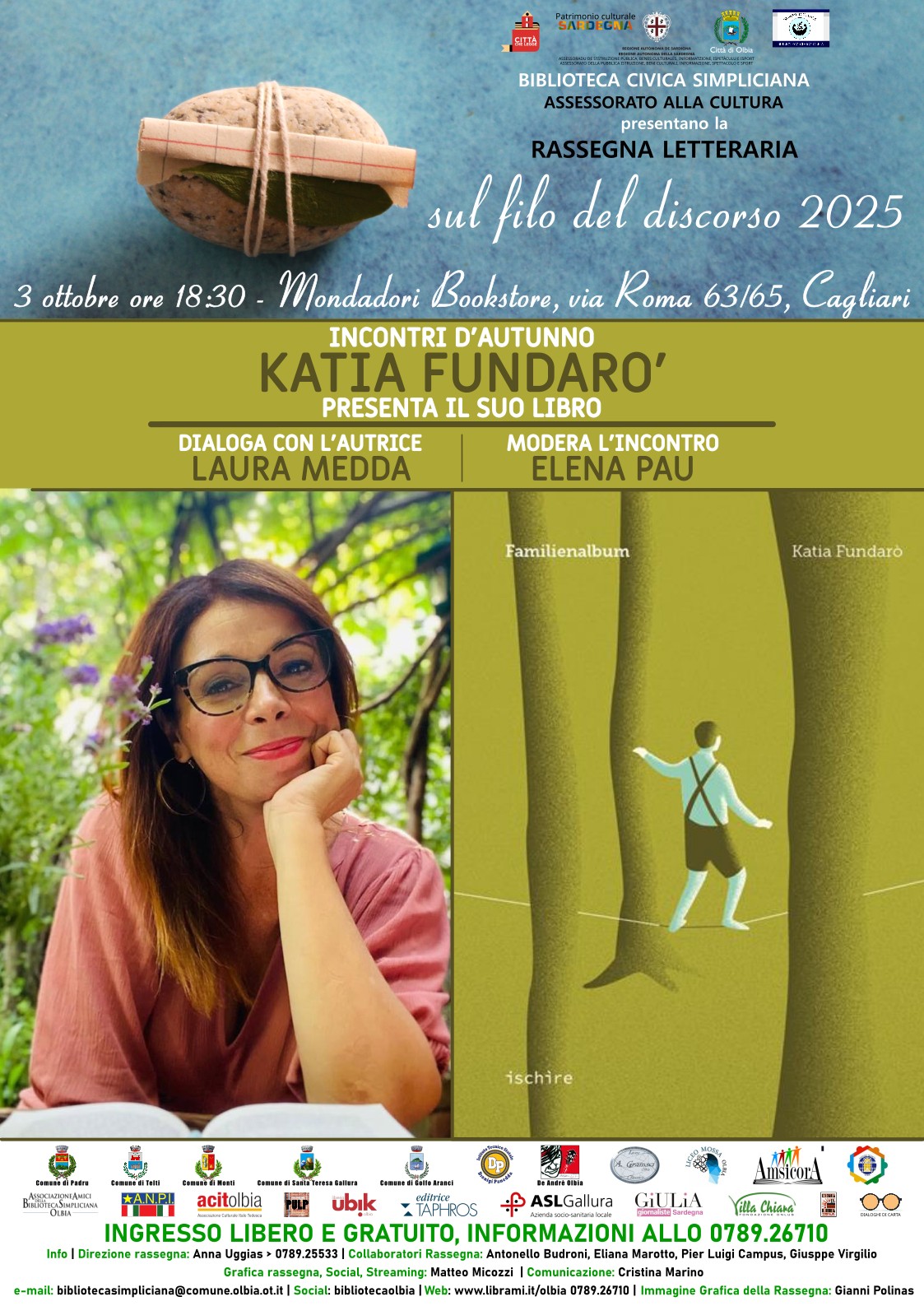 - Venerdì 3 ottobre 2025, ore 18:00, presentazione del libro "Familienalbum" di Katia Fundarò, c/o Via Roma 63/65, Cagliari;